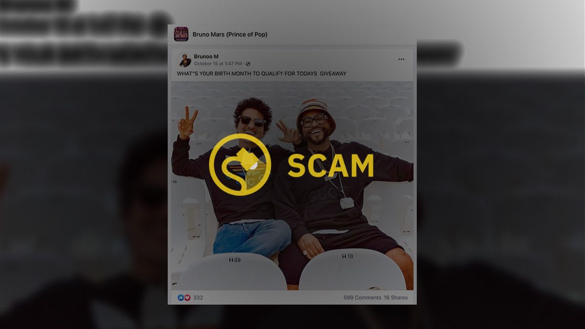 In October 2022, we received mail from a reader that asked if musician Bruno Mars was holding a Facebook giveaway for gift cards worth $750 or $10,000 in cash. We did some quick digging and, as expected, were able to confirm that scammers were behind these posts. Mars was not giving away money on Facebook, nor did he have anything to do with the scam.