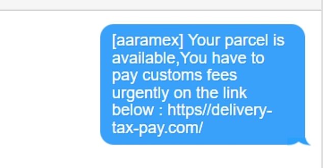 The text read: ‘Your parcel is available, you have to pay customs fees urgently on the link below.’