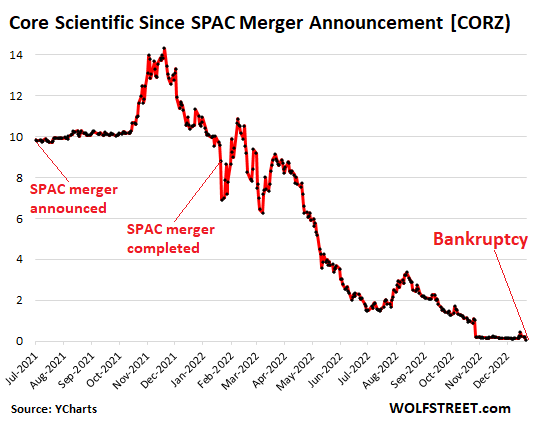 On November 22, it reported that it had lost $435 million in the third quarter, on $162 million in revenues; and that it had lost $1.7 billion in the first nine months, on $519 million in revenues. So now Core Scientific is another one of the heroes in my pantheon of Imploded Stocks to have filed for bankruptcy.